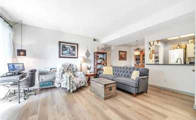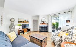 Located In the Heart of Valencia, this super cute updated lower level unit has the WOW factor!! Absolutely charming, this one bedroom one bath unit is Move-in ready!! Enter into a spacious Living area with a marble accented gas fireplace and sliding glass door to oversized private stone patio. Enjoy your morning coffee outside with views of trees and greenery. The Kitchen has ample cabinets, granite counters and a cozy Breakfast Bar. Adjacent Dining Area overlooks Kitchen and Living room. New luxury vinyl plank flooring throughout. Bedroom features a walk-in closet and a second slider to your inviting private patio. Adjacent Bath has wall to wall vanity with updated dual sinks/faucets, twin mirrors and Tub/Shower combo. Stackable Washer and Dryer in the unit. Great location within the complex adjacent to a residential neighborhood with views of trees and greenery from all windows and doors. Unit comes with a single car garage which is just around the corner from the unit plus one assigned parking spot. Multiple Pools and Spas throughout the complex make this home feel like a resort! Plenty of visitor parking throughout the complex. Ideal location with loads of shopping and restaurants--close to Valencia Town Center, Valencia Crossroads and Granary Square