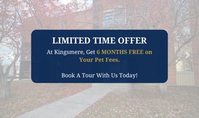 GET 6 MONTHS FREE PET FEES* AT KINGSMERE IN CALGARY