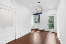 2 bedroom + office recently renovated upper duplex! From the entrance, the living room welcomes you at the front of the apartment. The beautiful up-to-date kitchen is on the opposite side and even gives you access to a large sunny terrace! The kitchen is a good size and allows for a dining area. The master bedroom has a walk-in closet as well as an adjoining bathroom with a shower. The second bedroom has no wardrobe but it is possible to install PAX storage units and the third closed room is very practical as a home office. The family bathroom has a combined bath/shower.