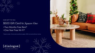 Rent Special available! Our Gift To You Receive a $500 Square One Gift Card this holiday season. Plus, enjoy up to two months free rent and one-year free Wi-Fi on select suites. *Terms and conditions apply. Offer can end without notice.
