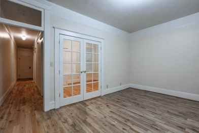 This spacious One Bedroom flat offers wood floors and clawfoot tub. Black and white tile accent the open kitchen and offers a convenient and fantastic place to call home.