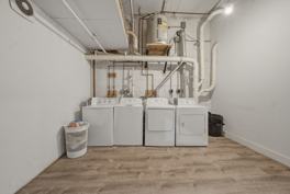 These 10 unique, 2 bedroom loft apartments have upscale features such as stainless steel appliances, granite countertops, and hardwood floors throughout. The large windows and balconies bring an abbundance of natural sunlight into these units. There is also a secure, on-site parking garage for residents of this building.