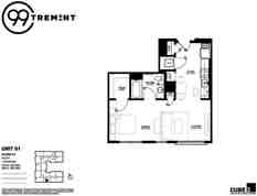 Residents of 99 Tremont enjoy luxury amenities including a fitness center, resident lounge, billiards room, media room, and secure package lockers. Additional perks include in-unit laundry, central A/C, elevator access, and one garage parking space.