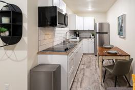 Modern studio loft-style 1 bathroom apartment with in-unit stacked laundry and private balcony! Access to off-street parking, 2 blocks from downtown, in a quiet neighborhood but still close to it all!