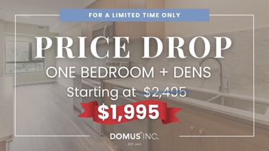 Rent Special available! PRICE DROP LIMITED TIME ONLY Limited time only, select One bedroom + Dens are up to $500 off a monthly rent