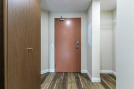 580 Coldstream offers 1+ Den and 2 Bed apartments that have been tastefully designed with a warm palette to create a cozy and inviting space for living in. Features include quartz countertops, stainless steel LG and Samsung appliances, beautiful custom vinyl plank flooring, and ample cupboard space accented with gold finishes. Hidden in the gorgeous cabinetry, you'll find your in-suite washer/dryer.
