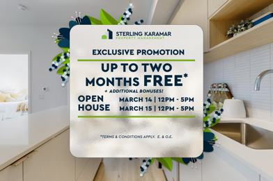 Rent Special available! Limited Time Offer | Up to 2 Months FREE Rent on a 14 Month Lease + 3 Months FREE Parking + 6 Months FREE Locker & More!* Limited Time Offer | Up to 2 Months FREE Rent on a 14 Month Lease + 3 Months FREE Parking + 6 Months FREE Locker & More!* *Terms & Conditions Apply.