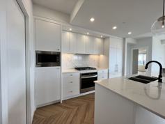 - Energy efficient appliances integrated into the high gloss white cabinetry
