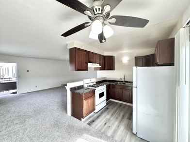 - Carpeted Living + Bedrooms, LVP Kitchen + Bath