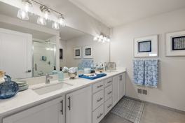 Inside your Mystic Cove townhome, you'll find modern floor plans, designer kitchens, and spacious bedrooms with walk-in closets, providing the perfect blend of comfort and style. Convenience is key, with features like an attached garage, full-size washer and dryer, and double sink vanities in the bathrooms. Plus, ADA adaptable features ensure accessibility for all residents.