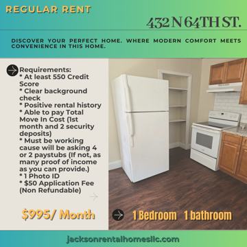 Welcome to 432 N 64th St., a cozy and charming 1-bedroom, 1-bathroom apartment available for just $995/month. Perfect for individuals or couples seeking a clean, comfortable, and affordable space in a convenient West Philadelphia location, this home checks all the right boxes. Step into a bright and airy apartment that welcomes you with natural light streaming through the windows. The hardwood floors throughout add warmth and character, while the layout offers just the right amount of space to relax, work, or entertain. The kitchen is equipped with classic white appliances and plenty of cabinet space, making meal preparation simple and enjoyable. The nicely sized bedroom offers a comfortable retreat, while the tiled bathroom with a full tub provides a relaxing space to unwind at the end of the day. This apartment is located just a few blocks away from Granahan Playground & Skatepark, perfect for outdoor activities and community fun. It's also conveniently close to Harambee Institute and the Overbrook Educational Center, making it a great option for students, educators, or anyone who values accessibility to nearby schools and learning institutions. Whether you're a first-time renter, downsizing, or simply looking for a well-maintained place to call home, 432 N 64th St. is an excellent opportunity. $995/ Month Requirements * Atleast 550 Credit Score * Clear background check * Positive rental history * Able to pay Total Move In Cost (1st month and 2 security deposits) * Must be working cause will be asking 4 or 2 paystubs (If not, as many proof of income as you can provide.) * 1 Photo ID * $50 Application Fee (Non Refundable)