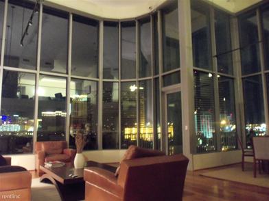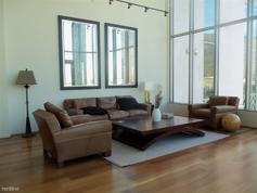 This furnished unit offers open floor plan, high ceilings, dramatic two story height large windows throughout the living room area, state of the art motorized window roller shades, stunning hardwood floors, custom cabinetry, granite counters & marble accents throughout, dryer and washer, high end stainless steel kitchen appliances including a wine cooler, . . .. etc..
