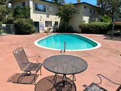 The unit is painted in designer colors, and features wood floors, ceiling fans and oversized windows. There is gated covered parking, on site laundry and a swimming pool.