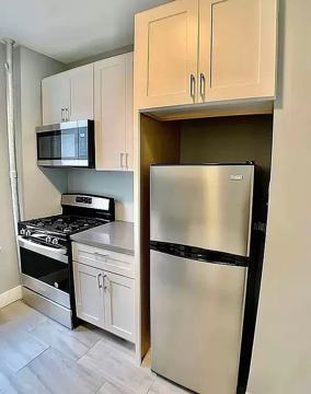This freshly renovated apartment has a spacious layout with a chef's kitchen, large rooms and stainless steel appliances. It features Chef's kitchen with stone countertops, abundant cabinetry, SS appliances, dishwasher , Queen-sized bedroom, Spacious living room, Custom inlaid hardwood floors, and Great light.