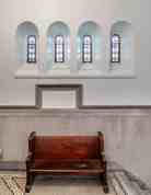 This newly converted church featuring original hardwood floors, stained glass window treatment crafted from the original church windows, and a built-in desk/workstation in some of the apartments.
