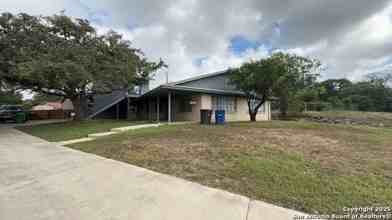House sits on a large piece of land, side yard is included in the rent, backyard facing main street and is fenced in, long driveway with a covered patio and room for additional cars, large front yard. Has 4 bedrooms with lots and lots of cabinet storage, 2 sinks in the kitchen, laundry room in the hallway with plenty of storage area, also known as 5111 Slayden. Has an upstairs apt that will also be rented. Saltillo tile and laminate flooring, no carpet. Quick jump to 410 and IH 10 for easy access to downtown or far west side. This is a Gem!! Apply Now!
