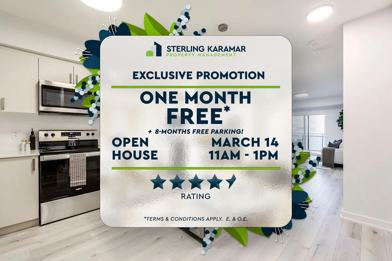 Limited Time Offer | Enjoy 1 Month FREE on a 13 Month Lease + 8-Months FREE Parking!*