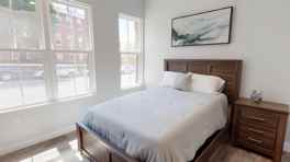 This 2BR unit boasts 1,005 sf of smart home living includes a large living space with excellent natural lighting, a kitchen with quartz countertops, stainless steel appliances, high-end cabinetry and counter-height bar seating, ample storage closets and convenient in-unit laundry. The spacious sleeping accommodations include a primary bedroom with a walk-in closet and large semi-private bathroom and an additional bedroom with access to a shared unit bathroom. The unit's smart features include fob and cell phone unit access and WiFi-enabled light switches and thermostats.