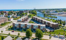 Townhouse luxury apartments with unique breathtaking architecture inside and out. Sleek and sophisticated, Kingsbury Village offers something new and unique to Sheboygan County. This distinctive and stylish townhome design provides an extremely comfortable, private and efficient living space. Adjacent to the walking/bicycle path and along the Sheboygan River, these pet-friendly apartments are only a couple blocks from the vibrant Downtown Sheboygan and Lake Michigan beaches. With 1,395 square feet of livable space – there’s nothing else like it in the county.
