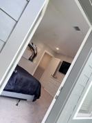 CALLING ALL TRAVEL NURSES/BUSINESS PROFESSIONALS Balcony Queen Retreat with En-Suite Bath This spacious master suite is designed for ultimate comfort and privacy. Featuring a queen-sized bed, dresser, and mounted TV, it opens to a private balcony where you can enjoy morning coffee or unwind in the evening. The en-suite bathroom offers a walk-in shower, and blackout curtains make for restful nights. A large closet and secure keyless entry add convenience for long-term stays.