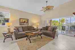 Experience comfortable living in this fully furnished 3-bedroom, 2-bathroom coach home, AVAILABLE IMMEDIATELY as a turnkey furnished annual rental in the gated community of Bellamar at Beachwalk in Fort Myers. This practical property spans over 1,800 sq ft and features ground-level entry with an interior staircase leading to the second-floor living area. It’s fully tiled and includes vaulted ceilings, overhead fans, and plantation shutters. The open-concept living space, which combines the living room, dining area, and kitchen, opens onto a fully screened balcony—ideal for relaxed evenings. The living room is equipped with a large flat-screen TV. A split floor plan offers privacy, with the master bedroom equipped with a queen-sized bed, an en-suite bathroom, and a large walk-in closet. The kitchen is fully equipped with full-sized appliances and includes a walk-in pantry with laundry facilities. A single-car garage with additional driveway parking is also available. The Bellamar community provides amenities such as a heated pool, sundeck, spa, clubhouse, and fitness room. For recreation, four bicycles, a ping pong table, a propane grill, and beach chairs are available for use. Located a short drive from Fort Myers Beach and close to local dining and shopping areas, this Bellamar coach home is an excellent base for a Southwest Florida getaway, ready for you to move in and start enjoying immediately.