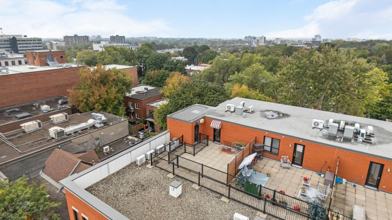Spacious 2-story penthouse of 1500 sq. ft. with three bedrooms and three full bathrooms. Corner unit! Two large sunny terraces with beautiful views of the city. Built in 2013. Possibility of having a parking space in the garage. Ideal location for getting to the city center / a few steps from the Snowdon metro.
