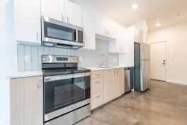 Enjoy tall ceilings, large windows, and an open layout that fills the space with natural light. The kitchen features stainless steel appliances, quartz countertops, and modern cabinetry, while the bathroom includes a walk-in shower and stylish finishes. Added comforts include air conditioning and your own in-unit washer and dryer.