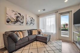 Welcome home to this gorgeous 3-year-old corner unit condo! Enjoy an abundance of natural light, open floor plan, spacious 1 bedroom unit with his and her closets, and a separate office/den. Beautiful kitchen with Quartz countertops, stainless steel appliances, and a gas range. Custom window coverings are only 2 years old. Featuring a clubhouse with a full kitchen, TVs, and a fireplace (also available for private gatherings). Unwind in the sparkling pool and spa, gym, or yoga studio or at one of the beautiful outdoor BBQ areas. Assigned parking, with plenty of guest parking with EV charging stations, and a secure entrance/lobby. HOA covers water and garbage. Easy access to major commuter freeways and public transportation. With all the conveniences of restaurants, shopping, and major grocery stores all just around the corner. Luxury living at its best!