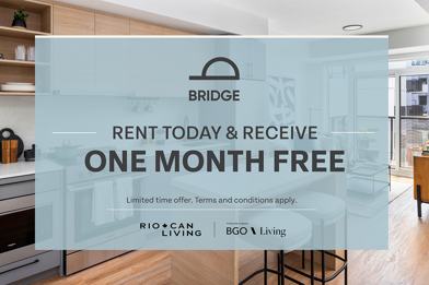 Bridge is a boutique 16-storey residential rental community at Queen & Coxwell, offering thoughtfully designed suites ranging from studios to 3-bedrooms. With open-concept layouts, modern finishes, and curated amenities, Bridge blends contemporary comfort with the energy of a vibrant east-end community.