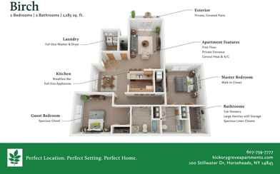 The Birch features a quaint kitchen with a breakfast bar and all appliances, including a dishwasher and garbage disposal. The master bedroom includes a large walk-in closet and en-suite bathroom with double vanity, tiled flooring & tub surround, and a linen closet. The spacious guest bedroom has an attached bathroom with a vanity, tile surround, and a linen closet. The open living area offers easy access to a private, covered patio. All lower level units provide handicap accessible living.