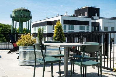 Residents can take advantage of a dedicated community study and work area on the main floor, offering a quiet, productive space ideal for remote work, studying, or creative projects. You can also unwind on the rooftop deck, which offers sweeping views of the city and features BBQ grills—an ideal setting to relax, socialize, or work outside.