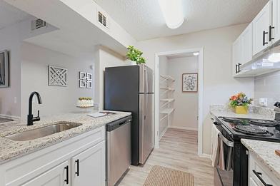 Discover your new home today at The Park at Trapani Apartment Homes, where comfort meets convenience. Choose from our stylish one, two, and three bedroom apartments designed for both relaxation and entertainment. Our apartments feature wood laminate flooring, spacious living areas, and kitchens with sleek tile backsplash, black appliances, and custom cabinetry. And when laundry day rolls around, it will always be smooth sailing with our in-unit washer and dryers!
