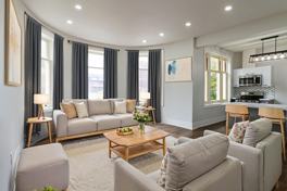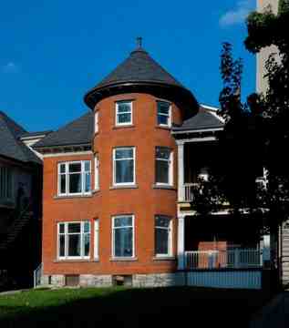 Iconic Design: A living space within the stunning Queen Anne turret with large windows.