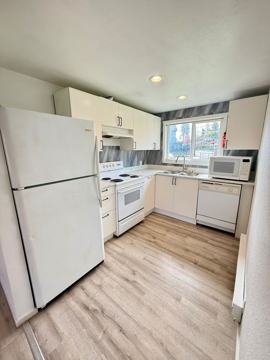 The open living and dining area is filled with natural light, creating a warm and inviting space perfect for relaxing or entertaining. The updated kitchen features ample cabinet space, full-size appliances, and a functional design that makes everyday living convenient.