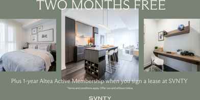Rent Special available! Two Months Free + 1-year Altea Active Membership Receive Two Months free and a 1-year Altea Active Membership when you sign a lease at SVNTY. *Terms and conditions apply. Offer can end without notice.