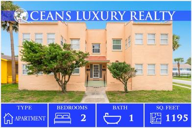 Discover this charming 2nd floor 2-bedroom, 1-bath home just steps from the beach in the heart of Daytona Beach. This upgraded residence features luxury vinyl plank flooring throughout, stainless steel appliances, and a bright bonus room/sun porch perfect for relaxing or a home office. Enjoy the convenience of washer and dryer hookups and a prime location within walking distance to the boardwalk, Ocean Walk, City Center, entertainment, and dining.