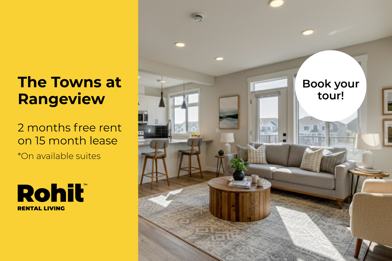 Welcome to The Towns at Rangeview, a premier townhouse community in SE Calgary designed for those who seek the privacy and scale of a home with the ease of a professionally managed lifestyle. Our residences feature award-winning interiors by HGTV-featured designer Louis Duncan-He, offering a sophisticated living experience. Be among the first to experience these elevated townhomes, where thoughtful design, high-end finishes, and expansive multi-level layouts support modern families and active professionals alike. Enjoy a community built around connection, featuring integrated green spaces and plenty of room to breathe. At The Towns at Rangeview, we know that home isn’t truly home without your pets; we are proudly pet-friendly and offer a welcoming environment for your cats and dogs.