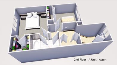 Featuring 2 Bedrooms and 1.5 Bathrooms with cathedral ceilings and enormous closet space.
