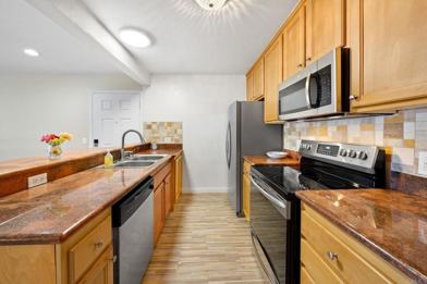 Kitchen: Comes equipped with essential appliances (refrigerator, stove, microwave, possibly dishwasher)