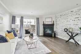 Updated flooring, open-concept layout, gas fireplace