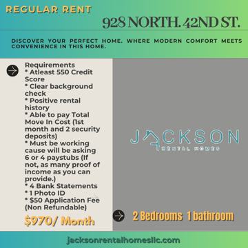 Welcome to 928 N. 42nd St. —a charming and affordable 2-bedroom, 1-bathroom home located in the heart of West Philadelphia. Priced at just $970/month, this well-maintained two-story property offers the space, comfort, and convenience you've been searching for—perfect for small families, couples, or individuals seeking a place to truly call home. Step inside and be greeted by gleaming hardwood floors and a spacious layout designed for easy living. The living and dining areas provide plenty of room to relax, host guests, or create a cozy work-from-home setup. With natural light streaming through the windows and nice-sized rooms throughout, every space feels bright and inviting. The kitchen is equipped with a clean white stove and plenty of cabinet space, making meal prep simple and efficient. Upstairs, you'll find two generously sized bedrooms, ideal for restful retreats or personal office space. The tiled bathroom features a full tub—perfect for winding down with a warm soak after a busy day. This two-level home provides added privacy and separation between living and sleeping areas, giving you the flexibility and comfort you need for everyday life. Located just blocks from Belmont Academy Middle Charter School & Daycare and Crossroads Accelerated Academy, this home is surrounded by educational resources, public transportation, and local amenities. If you're looking for an affordable, move-in-ready home in a growing neighborhood, 928 N. 42nd St. is a fantastic opportunity. $970/ Month Requirements * Atleast 550 Credit Score * Clear background check * Positive rental history * Able to pay Total Move In Cost (1st month and 2 security deposits) * Must be working cause will be asking 6 or 4 paystubs (If not, as many proof of income as you can provide.) * 4 Bank Statements * 1 Photo ID * $4.99 Application Fee (Non Refundable)