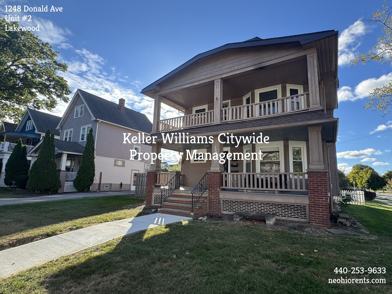 Highly desirable Lakewood rental location! This 2-bedroom, second-floor unit is ready for move-in. Features include garage parking, an oversized front porch, washer and dryer, and all hard surface flooring. The kitchen comes fully equipped with appliances (stove, fridge, dishwasher and microwave). Landscaping and snow removal are included in rent. Tenant is responsible for gas and electric; water and sewer are billed at a flat monthly rate. No smoking or housing vouchers accepted. Professionally managed by Keller Williams Citywide Property Management. Apply today at neohiorents. com and make this unit your new home!