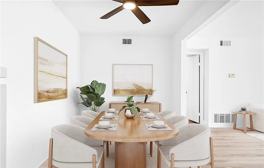 This charming, clean, and spacious one-bedroom, one-bathroom condo is filled with natural light and features an inviting open layout, luxury vinyl plank flooring, and fresh interior paint throughout. The bright living room opens to a private patio?perfect for entertaining?and flows into a lovely separate dining area. The kitchen features quartz-like countertops, wood cabinets, dishwasher, microwave, and stainless-steel sink, refrigerator and oven. The bedroom offers two large windows for ample light, while the updated bathroom includes a new vanity, modern mirror, stylish backsplash, and a quartz-like shower surround. Additional features include an oversized exterior storage closet, a covered carport, and no interior steps?all on one level. The home backs right up to the park and is a short one-minute walk to the pool and playground.