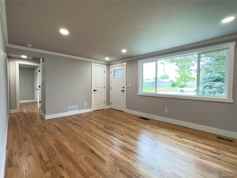 Welcome home to this beautifully updated ranch-style residence offering two bedrooms and one bathroom, blending classic charm with modern comfort. Inside, sunlight streams through large windows, highlighting the rich hardwood floors and freshly painted walls in soft, neutral hues. The inviting living room centers around a timeless brick fireplace, perfect for cozy evenings. The kitchen has been completely redesigned with sleek gray cabinetry, quartz countertops, and stainless steel appliances, offering both style and functionality. The bathroom features elegant tilework, a modern vanity, and updated fixtures for a spa-like feel. Each bedroom provides bright, airy comfort with peaceful views and ample space to relax. Outside, a spacious backyard shaded by mature trees invites outdoor entertaining or quiet retreat. With tasteful upgrades throughout, this home perfectly balances warmth, elegance, and modern convenience—ready for you to move right in.