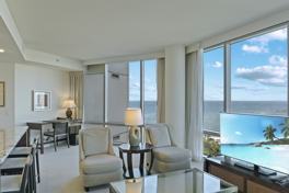50% DISCOUNT ON FIRST 2 MONTHS OF LEASE! Discover unparalleled elegance at Ka La'i Waikiki Beach Hotel & Resort (formerly Trump International Waikiki). This high-floor, Grand Residences level, boasts a fully furnished 2-bedroom, 2 full-bathroom, luxury condo offers a seamless blend of sophistication and comfort, just one block from the pristine shores of Waikiki Beach and Fort Derussy Beach Park. This spacious, turnkey residence adorned with top-tier finishes, including granite countertops, elegant carpet and travertine flooring. The gourmet kitchen is equipped with upscale appliances (Wolf, Sub-Zero) and a wine fridge, perfect for culinary enthusiasts. The expansive living and dining areas flow effortlessly onto the corner lanai, showcasing breathtaking ocean, park, and sunset views. The master suite features a plush King bed, and a spa-inspired bathroom with walk-in shower adjacent to the deep soaking tub. A second en-suite offers ample closet space and full bathroom. This is more than a rental. It’s an invitation to live the Waikiki dream in Five-Diamond splendor. HOA REQUIRES 12 MONTH LEASE-NO EXCEPTIONS. No Pets. Valet Parking $400/mo, or across the street for $210/mo.