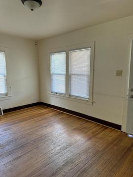 Townhome style apartment. Hardwood floors throughout. 1 car detached garage included in rent. Stove and refrigerator included.