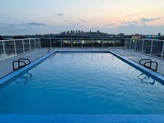 Building has a rooftop pool with a wonderful view of Montreal.