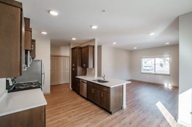 These brand new apartment homes are conveniently located in the heart of Keizer and tucked back away from the street, close to shopping, bus line, and walking distance to McNary High School, area businesses and parks. Our beautiful new apartment homes feature full size washer and dryer included in the unit, built-in A/C unit, all stainless steel kitchen appliances including an over-the-range built-in microwave, luxury vinyl plank flooring, deck/patio with extra storage, and off street parking. We also offer a pet area and professional landscape maintenance.