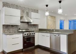 - The 'Heart of the Home' is the Kitchen, which has sleek 2 toned Cabinetry, Tiled Backsplash, SS Appliances incl/Hood Fan, QUARTZ Countertops incl/Breakfast Bar and Pantry.