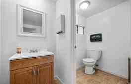 The gallery-style kitchen is a delight, boasting lovely wooden cabinets, modern appliances, and generous space for culinary creativity. The bedroom is large and filled with natural light, offering ample closet space with stylish mirrored doors for added convenience.